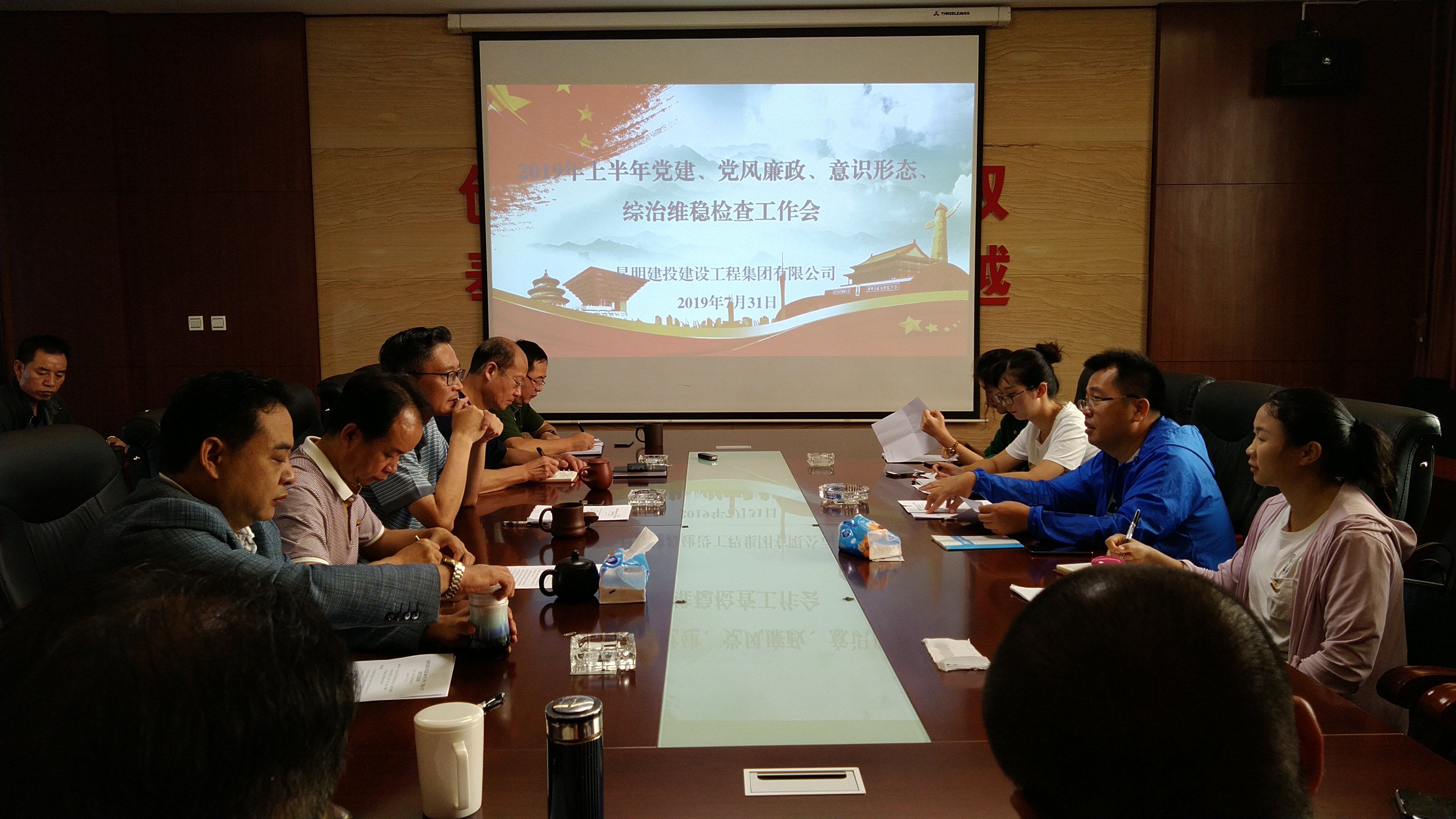 邢馬華同志代表公司作2019年上半年黨建、黨風(fēng)廉政建設、意識形態(tài)和綜治維穩工作檢查匯報,邢馬華同志和公司總經(jīng)理沈天英同志分別作2019年上半年個(gè)人履行“一崗雙責”自檢自查報告。檢查組查閱公司黨委、一分公司、安裝分公司、混凝土公司、房地產(chǎn)公司黨支部工作臺賬、查看黨員活動(dòng)室建設情況。檢查組對公司黨委工作臺賬存在的問(wèn)題進(jìn)行了現場(chǎng)反饋,各黨支部工作臺賬存在的問(wèn)題將在會(huì )后進(jìn)行反饋,并列出了書(shū)面檢查情況報告。